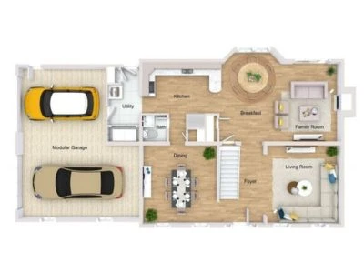 The ground floor offers a grand entrance leading to an open-concept living and dining area with floor-to-ceiling windows for natural light. It features a modern main kitchen and a separate service kitchen. The floor also includes a guest bedroom with an en-suite bathroom, a maid’s room, a driver’s room, a laundry area, and a storage space. The outdoor area consists of a private landscaped garden and a swimming pool.