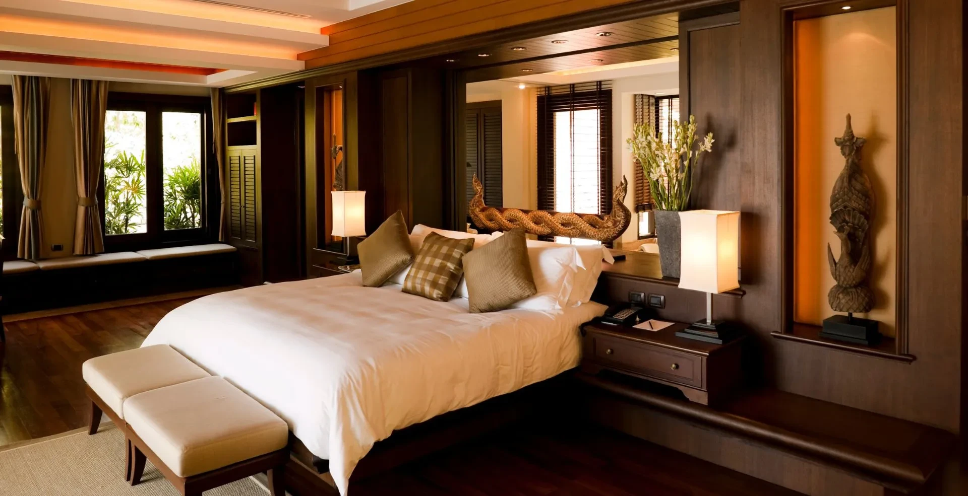 The ground floor offers a grand entrance leading to an open-concept living and dining area with floor-to-ceiling windows for natural light. It features a modern main kitchen and a separate service kitchen. The floor also includes a guest bedroom with an en-suite bathroom, a maid’s room, a driver’s room, a laundry area, and a storage space. The outdoor area consists of a private landscaped garden and a swimming pool.